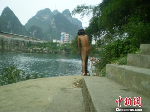 Sự việc xảy ra hôm 15-07-2012 ở sông Long Giang thuộc thành phố Hà Trì (Quảng Tây Trung Quốc). Chiều hôm ấy, khi đang bơi lội thư giãn trên sông, những người phụ nữ bỗng hoảng hốt nhận ra có một gã đàn ông trần như nhộng vừa… nhảy xuống sông.