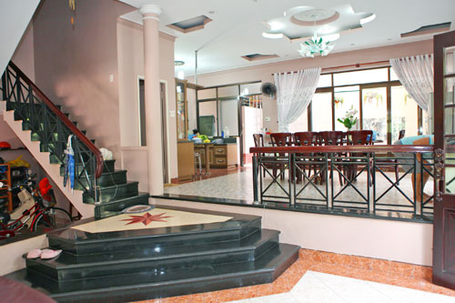 Toàn cảnh phòng khách khang trang của nhà MC Quốc Bình.