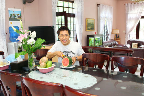 Quốc Bình cho biết, vì tính chất công việc nên anh thường xuyên phải đi ra ngoài, khi ở nhà chỉ thích đọc sách và lên mạng đọc tin tức. Hơn nữa, vì là con út trong gia đình, các anh chị đều có gia đình ở riêng nên ngôi nhà luôn có không gian yên tĩnh để anh nghỉ ngơi sau những bộn bề công việc.