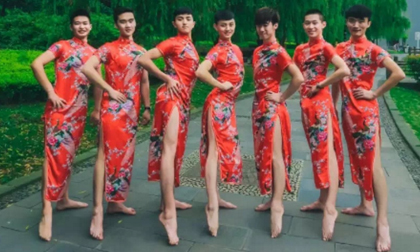 Dàn nam sinh mặc thời trang xường xám chụp ảnh tốt nghiệp