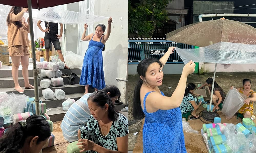 Dù đang ở cữ và bận chăm con, bà xã Lê Dương Bảo Lâm vẫn chuẩn bị đến 300 phần nhu yếu phẩm gửi cho người dân