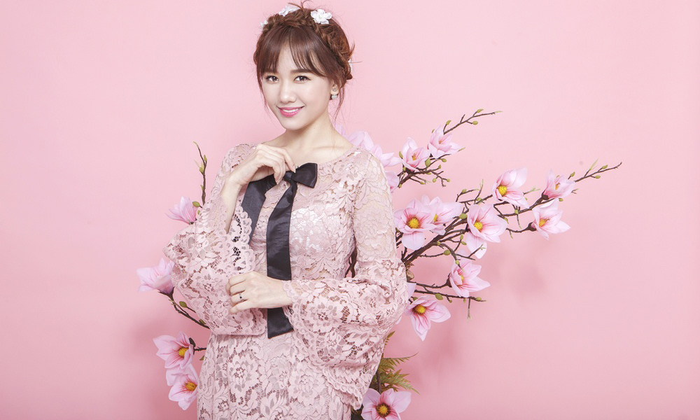 Hari Won trẻ trung diện áo dài ren đón Xuân