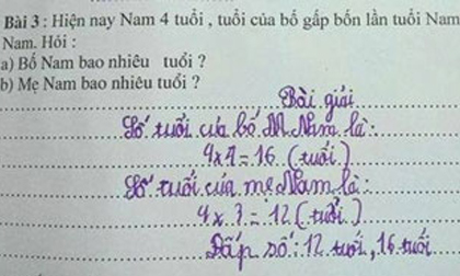 Mới đây, cư dân mạng đăng tải một đề Toán vô lý khi Nam 4 tuổi có bố 16 tuổi, mẹ 12 tuổi.