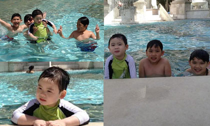 Ba 'chàng lính ngự lâm' nhà Bằng Kiều nô nức đi hồ bơi