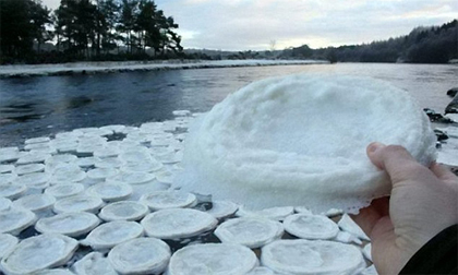 Gần đây, thời tiết giá lạnh tại Scotland đã khiến cho băng tuyết trên mặt sông đã kết lại thành hình những chiếc đĩa tròn...