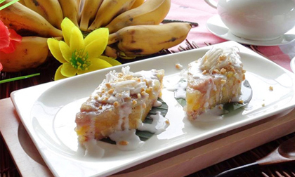 Bánh chuối mít mềm, dai dai và béo ngậy vị nước cốt dừa vô cùng hấp dẫn.