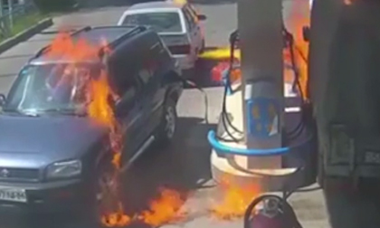Người tài xế dùng bật lửa để kiểm tra bình xăng, vô tình nhấn chìm cả cây xăng trong biển lửa.