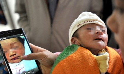 Do mắc một căn bệnh kỳ lạ nên bé trai mới sinh 24 ngày tuổi ở Hồ Bắc có khuôn mặt nhỏ, da nhăn nheo,...