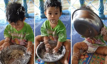 Kiểu ăn bún 'độc, lạ' của cậu bé khiến người xem không thể không cười.