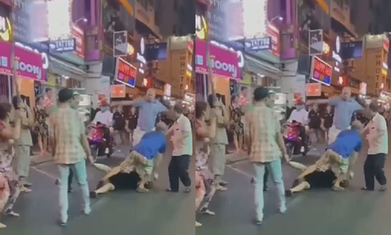 2 người phụ nữ cầm gậy choảng nhau ở phố đi bộ Bùi Viện, ông Tây vào giải cứu cũng vô tình 'dính đòn'