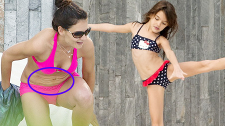 Suri mặc bikini dễ thương, Katie Holmes lộ bụng nhăn nhúm