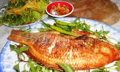 Món cá diêu hồng nướng mọi vàng ươm thật bắt mắt, lớp da cá bên ngoài thấm gia vị đậm đà, giòn giòn ôm lấy...