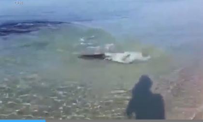 Video ghi lại được cảnh tượng con cá mập bơi vào bãi tắm để săn mồi khiến nhiều người sợ hãi.