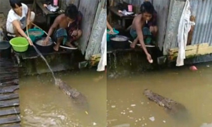 Phát hoảng với cảnh cá sấu 'khủng' vào tận nhà người dân 'xin ăn'