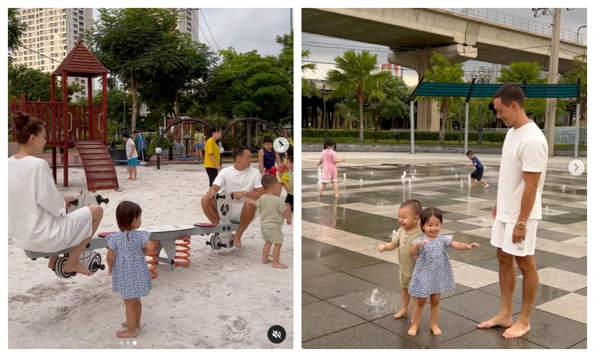 Khung ảnh hạnh phúc nhà Hà Hồ - Kim Lý: Cặp sinh đôi tung tăng vui nhộn, bố mẹ chơi còn hào hứng hơn con
