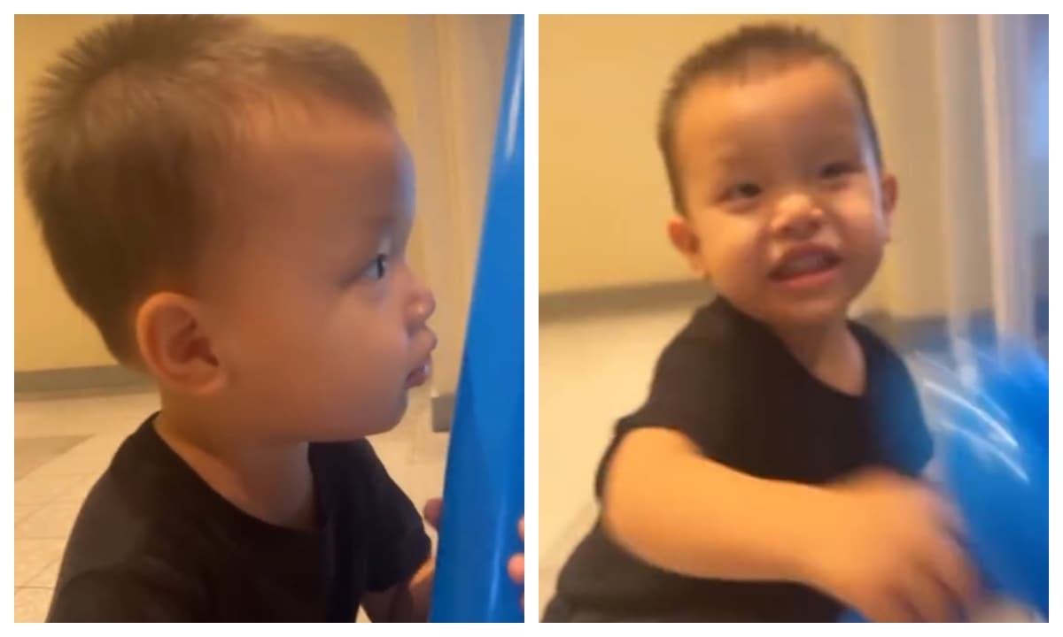 Được bố mẹ đạp xe dạo quanh khu nhà ở, cặp song sinh như hai thái cực: Lisa hoang mang tột độ, Leon dọa cả camera