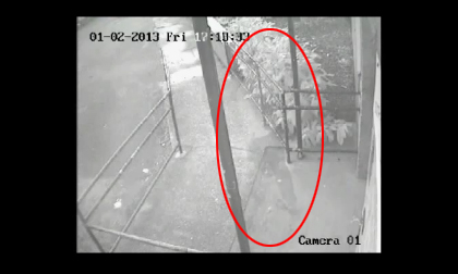 Video ghi lại hình ảnh một người đàn ông đi bộ ra khỏi cánh cửa được vài bước đến lan can cầu thang thì biến...