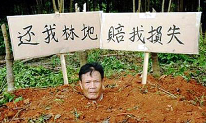 Một người đàn ông ở Trung Quốc đã quyết định tự đào hố chôn mình dưới đất chỉ trừ phần đầu để phản đối việc...