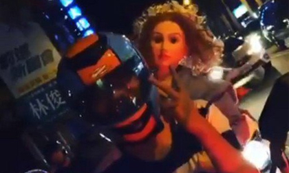 Hình ảnh chàng trai hiên ngang chở búp bê dạo phố trong clip đang thu hút rất nhiều sự quan tâm của cư dân mạng....