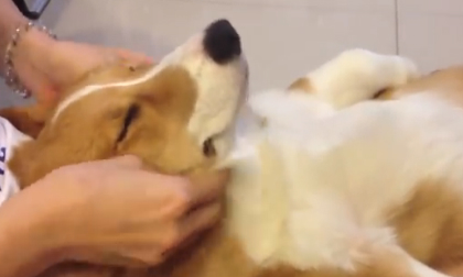 Chú chó nằm thư giãn như người khi được mát xa