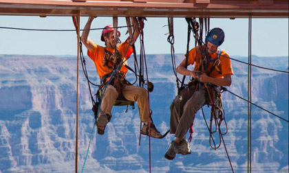 Công việc lau chùi lớp kính của Cầu đường bộ trên không bắc ngang đại vực Grand Canyon có thể khiến nhiều người phải đứng...