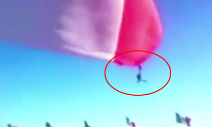 Binh sĩ bị lá cờ cuốn bay lên không trung