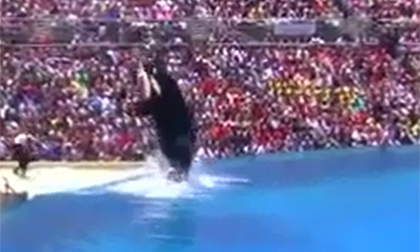 Chú cá heo khổng lồ đã có màn nhảy trên không thật tuyệt khiến mọi người trầm trồ reo hò vì thích thú.