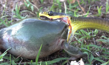 Cách mà ếch tự vệ khi bị rắn tấn công