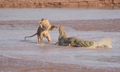 Cuộc chiến khốc liệt giữa bầy sư tử và cá sấu