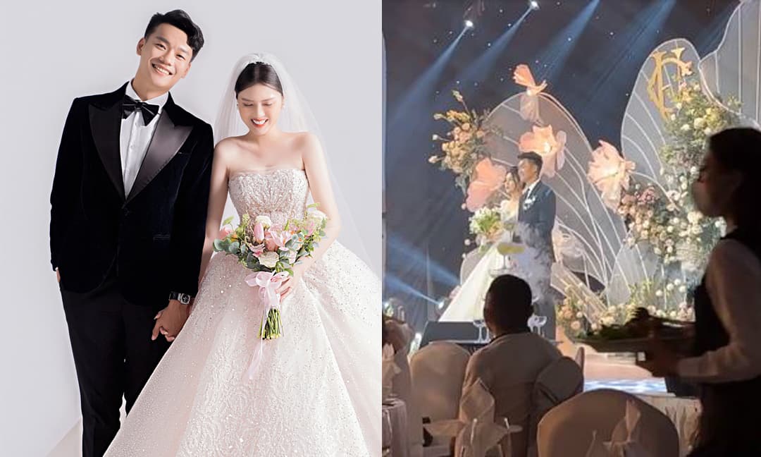 Đám cưới cầu thủ Thành Chung: Cô dâu chú rể bước vào lễ đường trong tiếng reo hò, chúc phúc của mọi người
