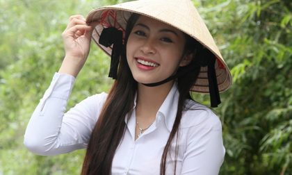 Hoa hậu Đại Dương Thu Thảo rạng rỡ nón lá đi làm từ thiện