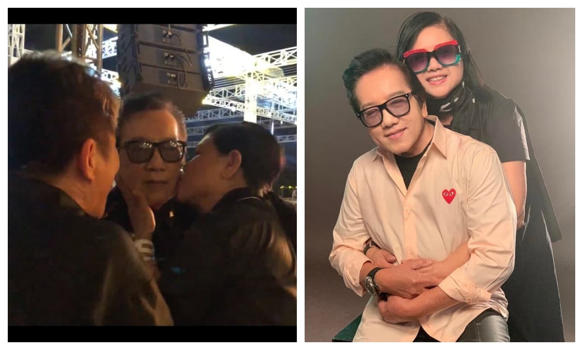 Bà xã Elvis Phương ngồi quay hình chồng ở hàng ghế khán giả, hôn chồng ngọt ngào ngay hậu trường