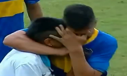 Sau khi tấn công trọng tài, một cầu thủ Argentina đã không thể kìm được nước mắt.