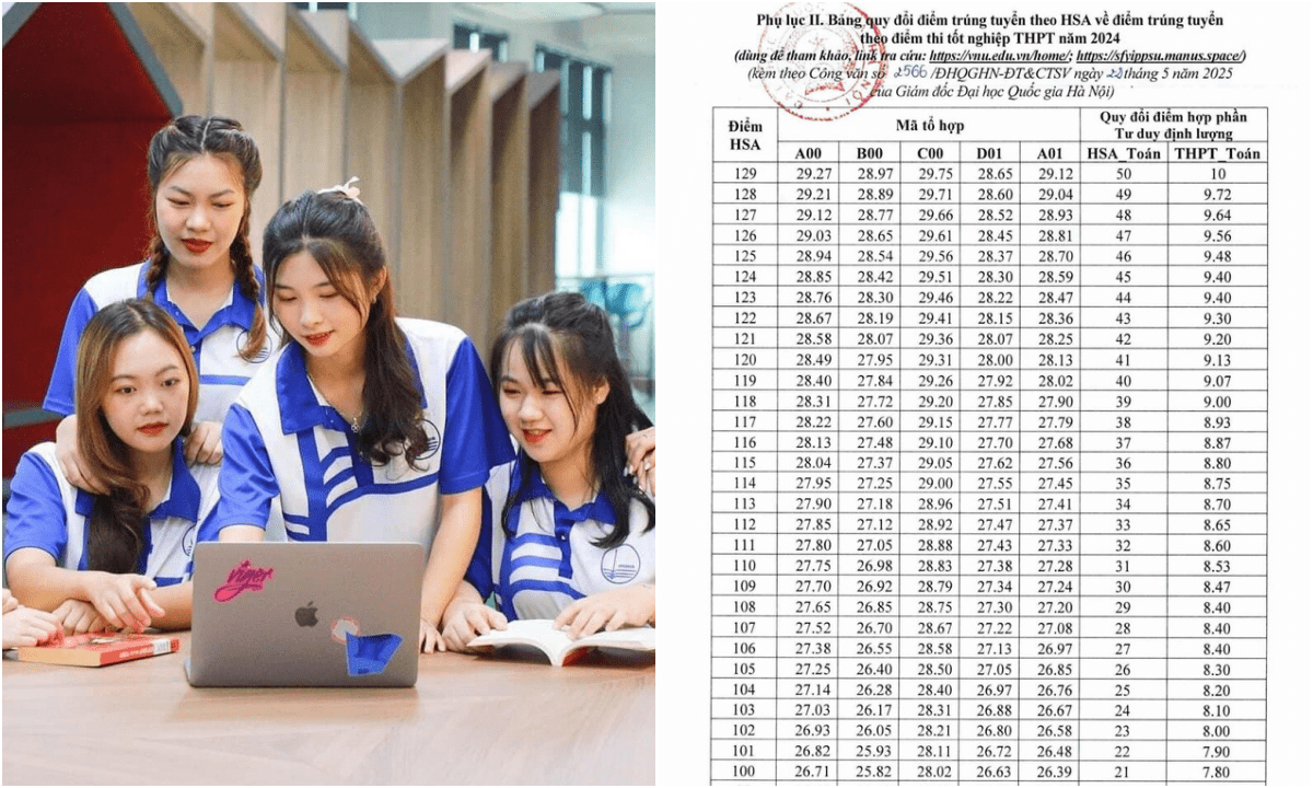Dựa trên dữ liệu điểm thi năm 2024, GDVN - ĐHQGHN đã công bố cách quy đổi điểm thi đánh giá năng lực (HSA) về...
