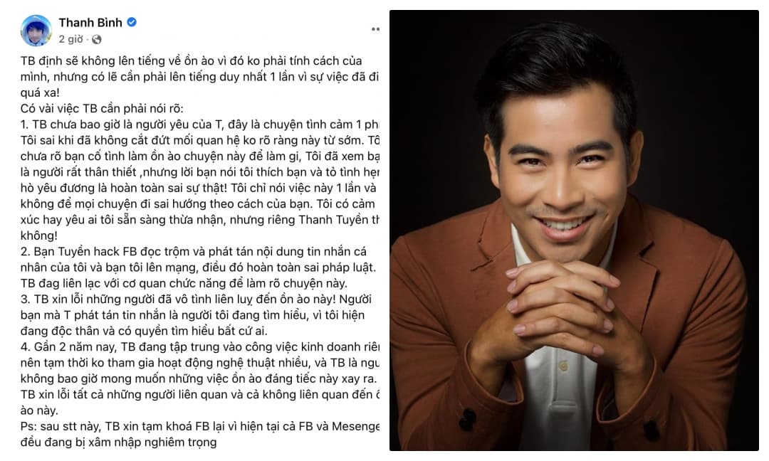 Diễn viên Thanh Bình đã thông qua trang cá nhân để lên tiếng về scandal tình ái.