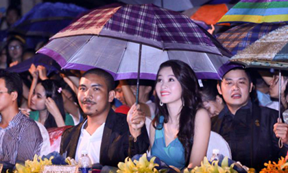 Hoa hậu Đặng Thu Thảo đội mưa xem ca nhạc