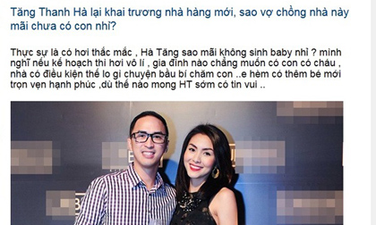 Fan thắc mắc sao vợ chồng Hà Tăng mãi chưa có con?