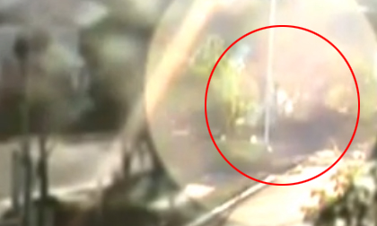 Trong đoạn clip lấy từ camera giám sát ở một tòa nhà cao tầng gần nơi xảy ra tai nạn, chiếc Porsche sau khi đâm...
