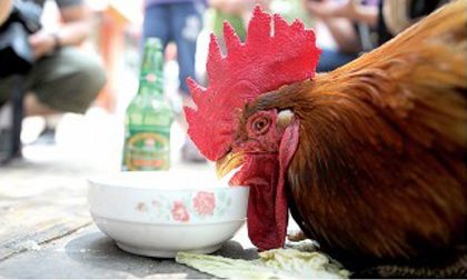 Gà trống biết… uống bia, hút thuốc, trông trẻ