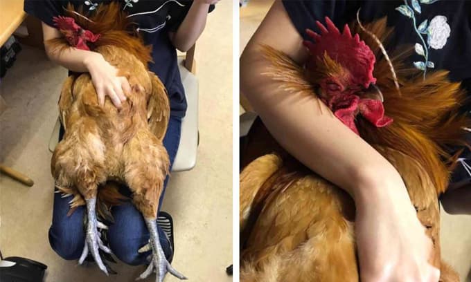 Hình ảnh chú gà trống ngủ quên trên đùi chủ nhân gây sốt