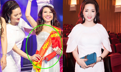 Giáng My chỉnh dải băng cho Hoa khôi vẫn để bị ngược