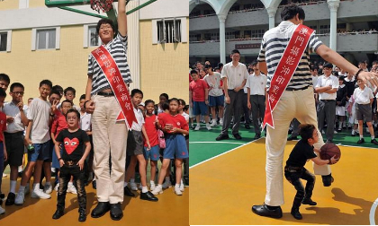 Người đàn ông cao nhất châu Á Zhang Huan, cao 2,38m, và người lùn nhất Trung Quốc Xu Guoyuan, cao 1,02m, đã có cuộc gặp...