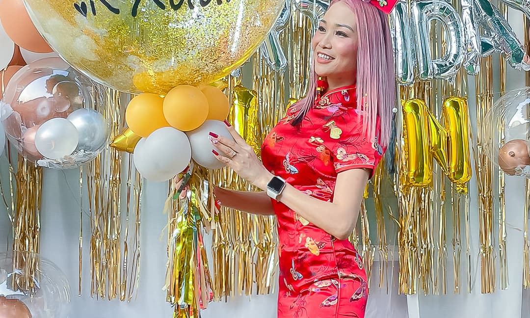 Diện sườn xám đỏ rực, Hoa hậu Xuân Nguyễn đón tuổi mới bên gia đình trong ngày đầu năm