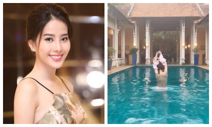 Yên bình một thời gian, Nam Em lại khiến fan 'mất máu' khi cởi áo khoe thân trong bể bơi