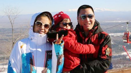 Triệu Vy khoe ảnh gia đình hạnh phúc đi trượt tuyết