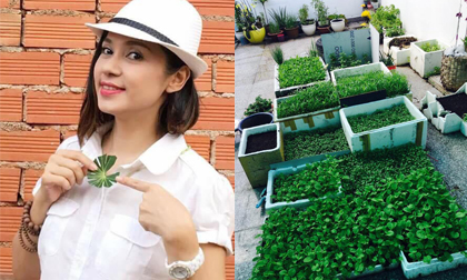 Việt Trinh khoe vườn rau sạch được trồng trong thùng xốp