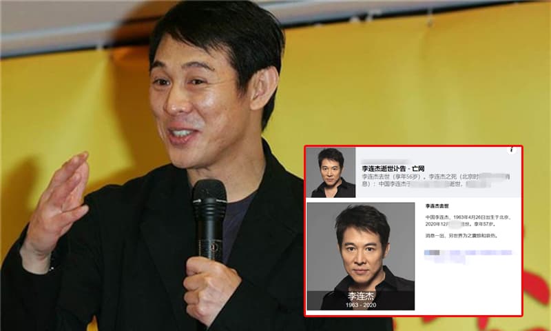 Mới đây, ngôi sao võ thuật Lý Liên Kiệt lại bị đồn qua đời sau thời gian sức khỏe không tốt. Cư dân mạng xứ...