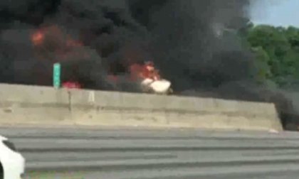 Máy bay rơi, bốc cháy ngùn ngụt trên đường cao tốc khiến 4 người chết