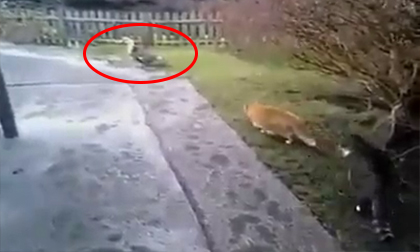 Chú mèo vàng đang rình bắt con ngan thì bất thình lình giật mình ở phía sau chú mèo đen nhào tới phá hỏng tất...