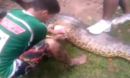 Con trăn khổng lồ đã nuốt chửng con chó pitbull đã bị những người dân ở Cuiabá, Brazil mổ bụng.